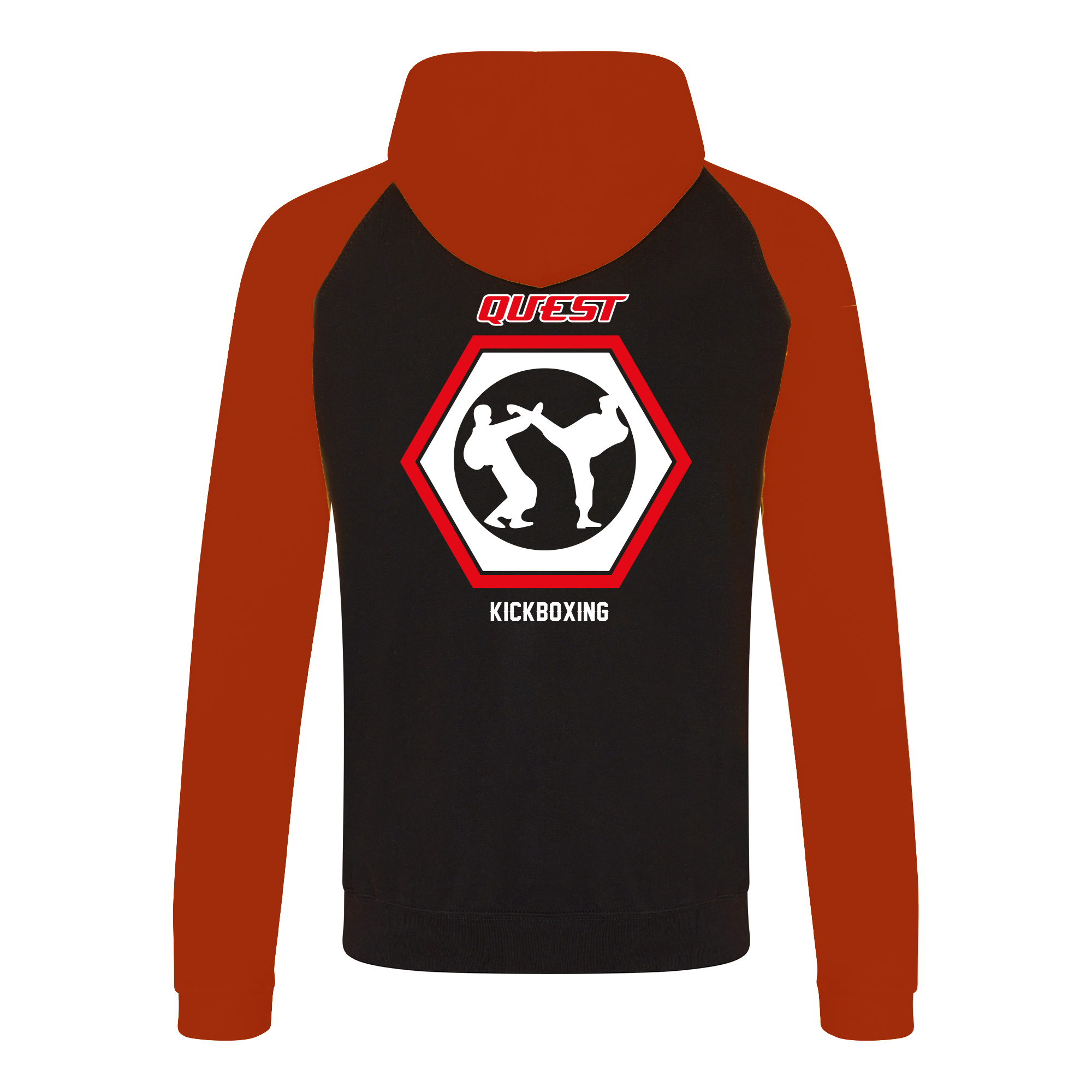 Quest Kickboxing Mens Baseball Style Pullover Hoodie with logo to front and large logo to the back.