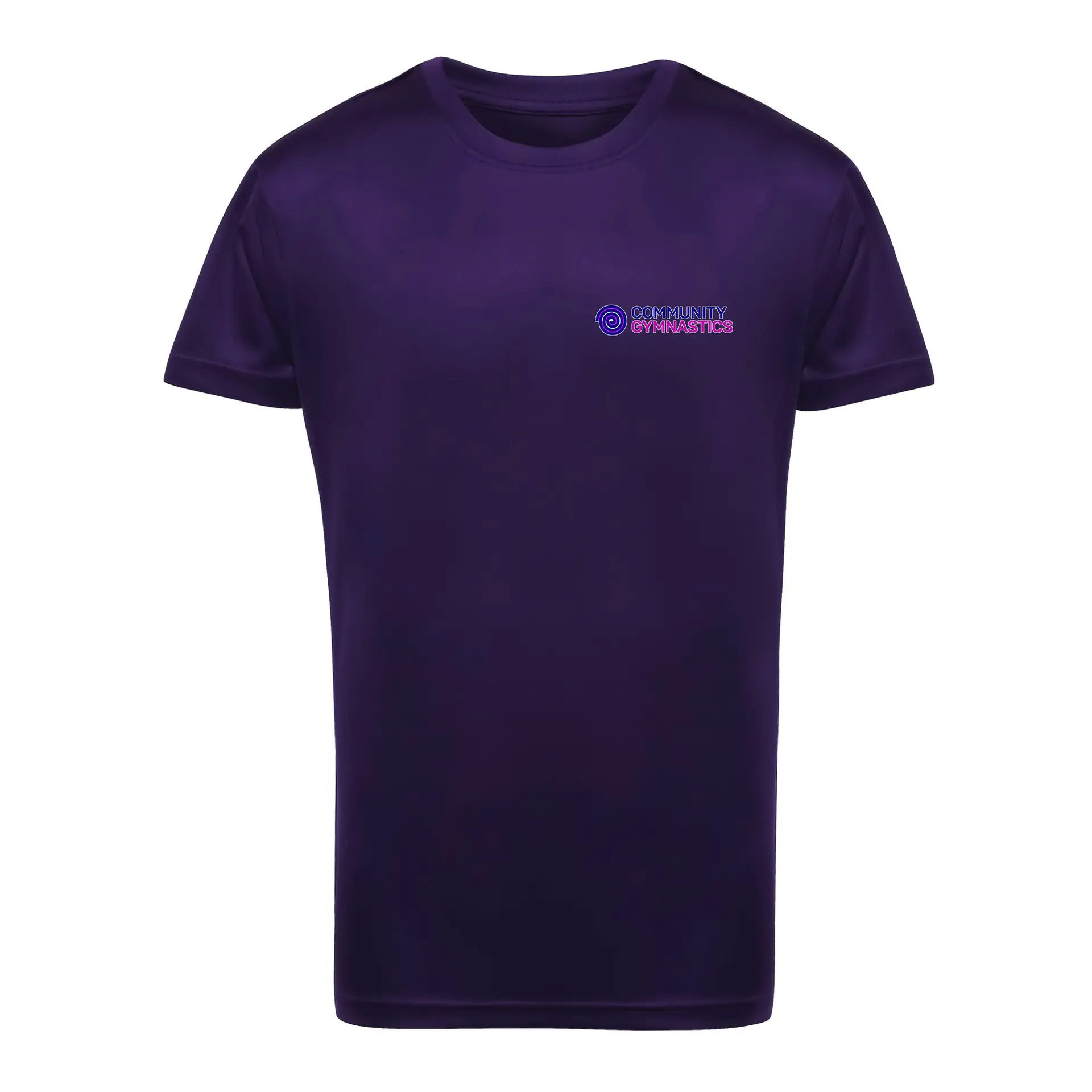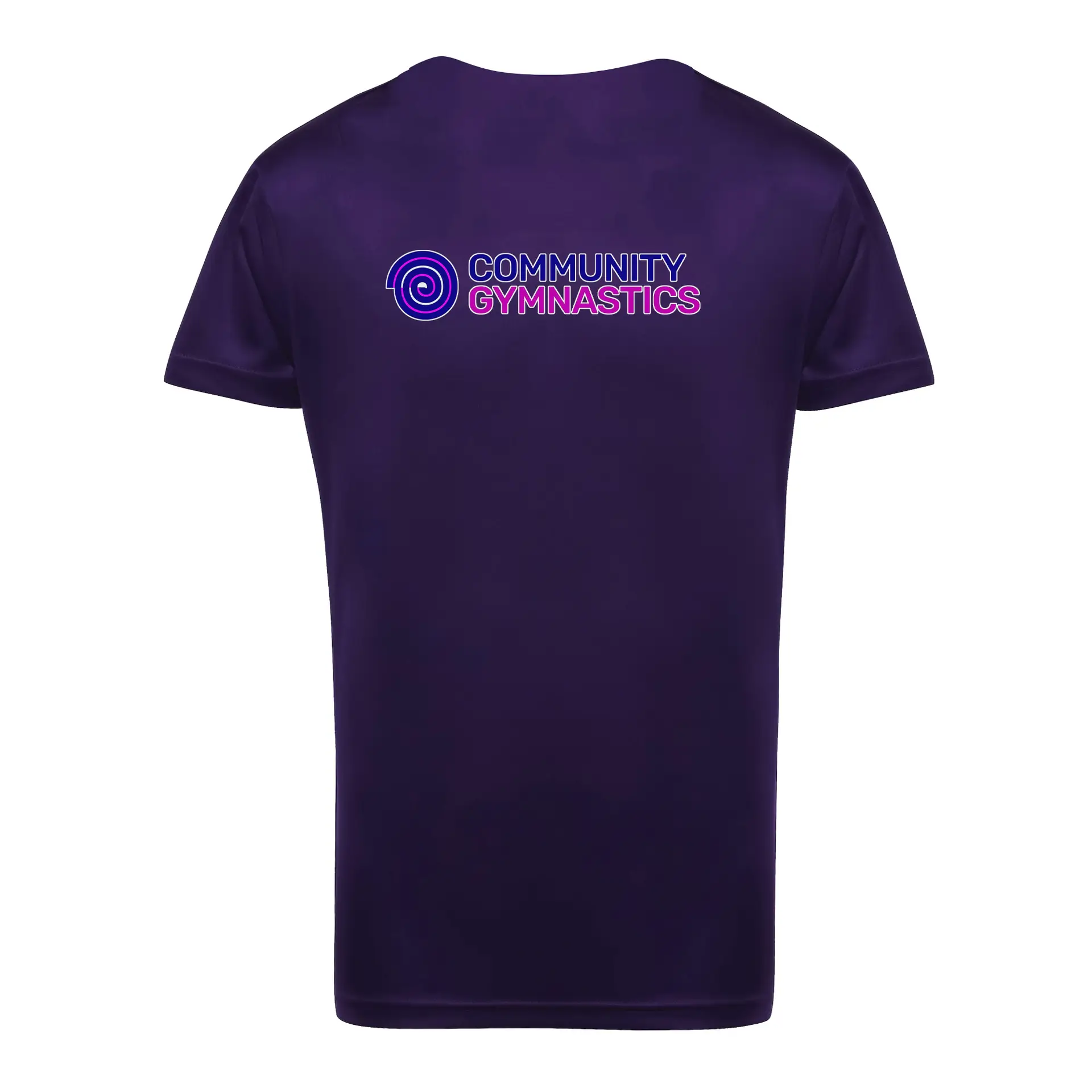 Community Gymnastics Childrens Polyester T-Shirt featuring logo to the front and Rear. Simple and stylish classic T-Shirt . Made from Polyestyer faced fabric.