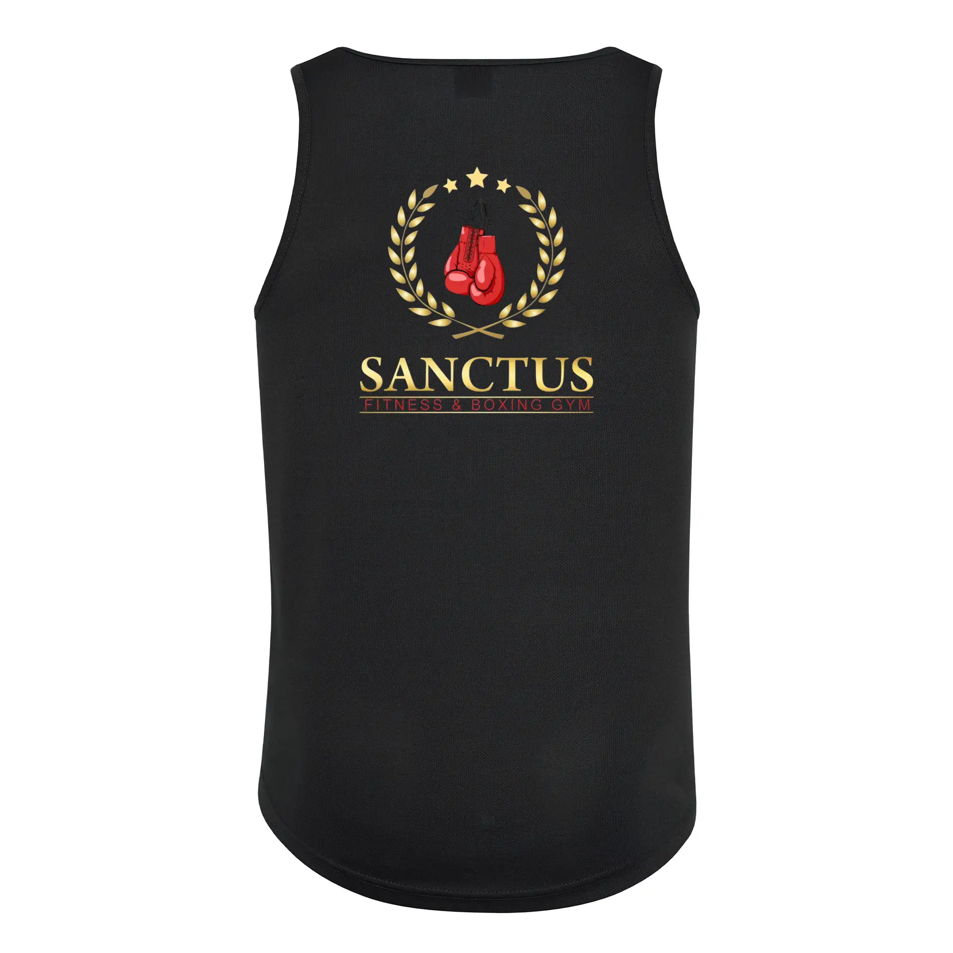Sanctus Boxing Mens Vest with logo to front and large logo to the back. Made from a lightweight Neoteric™ fabric and with a sporty fit and curved back hem, this vest has been designed to keep you cool and comfortable whilst working up a sweat.